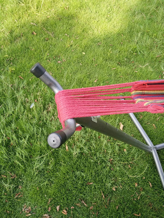 This hammock's material features cotton in a fun, multi-coloured design that resists fading in sunlight. The beautiful pattern is a complementary addition to a wide range of outdoor decors.