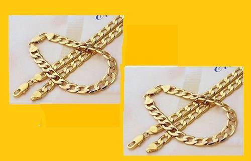 Fabulous and Elegant 8 mm 24ct Yellow Gold Filled Unisex Chain and Bracelet Set