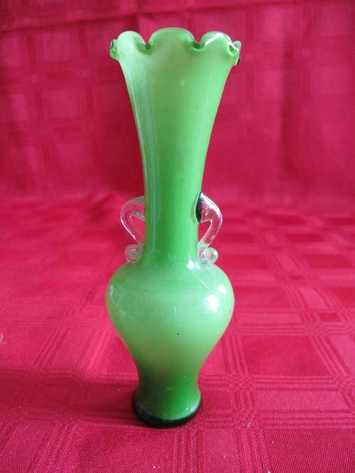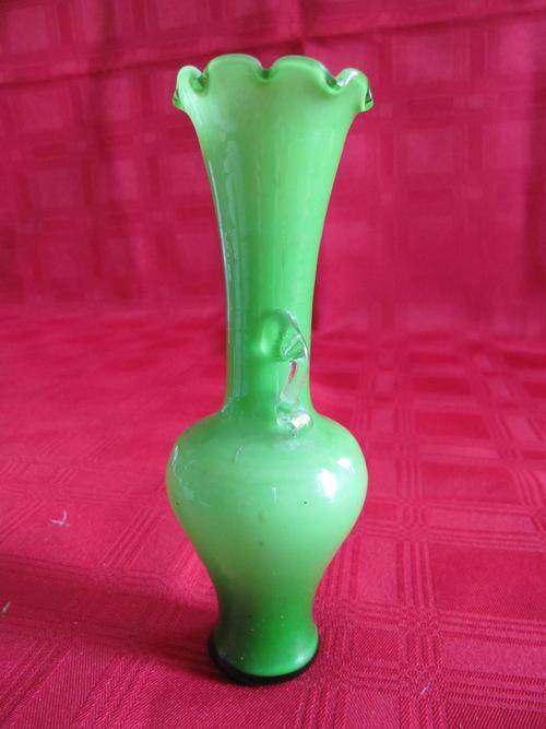 Lime Green Vase: H= 15cm, Top D= 4cm, Base D= 3cm