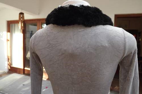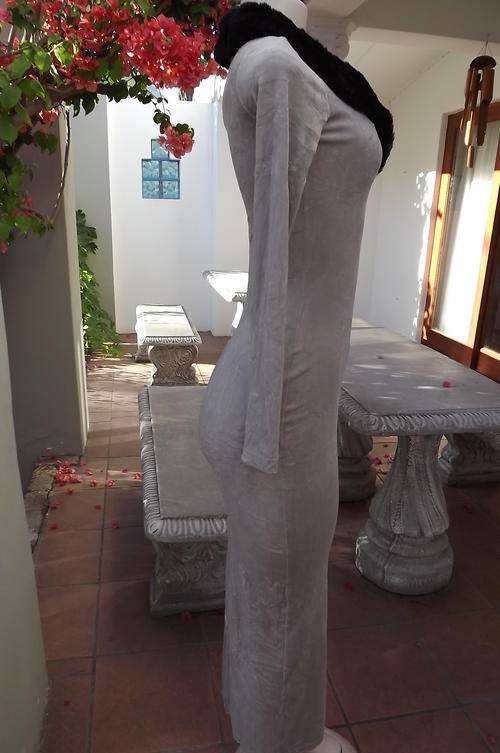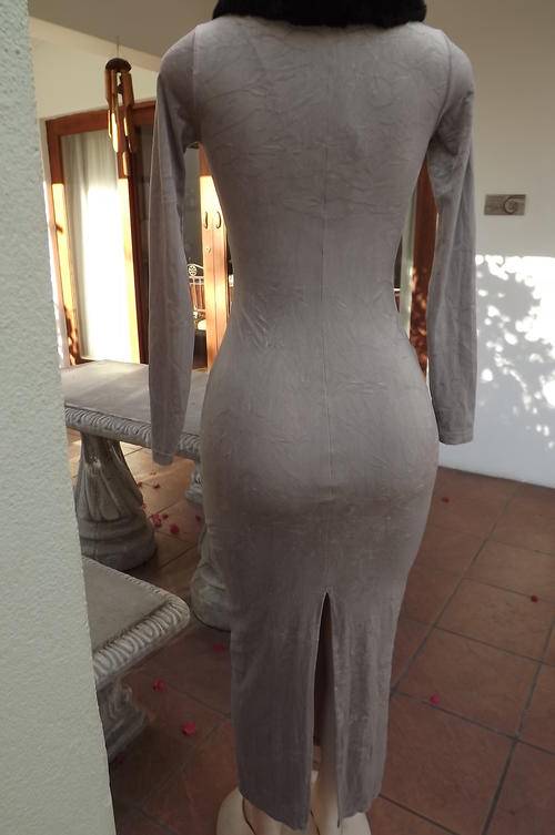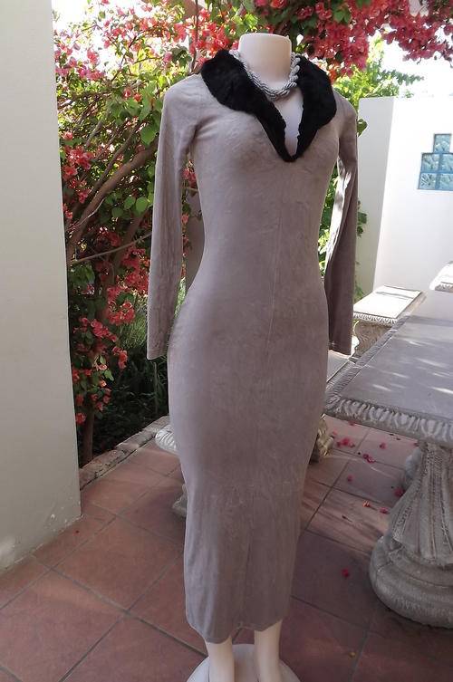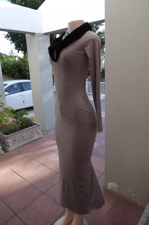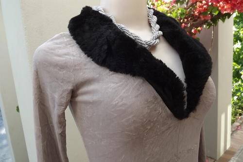 Fabulous Bisou-Bisou Dress in Poly/Lycra with Stretch in size 6/30 to 8/32 if you like a tight fit! - Crushed Velvet Look with Faux Fur Collar - Long Slit at Back - Designer Michele Bohbot won award in 2003 - as new