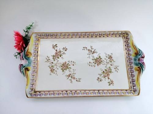 Fabulous Capodimonte Handmade Hand painted large tray Italy