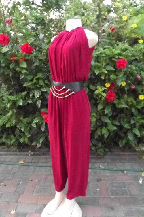 Fabulous Dark Red Jumpsuit for Evening or Day Wear in size 12/36 - new condition - belt included