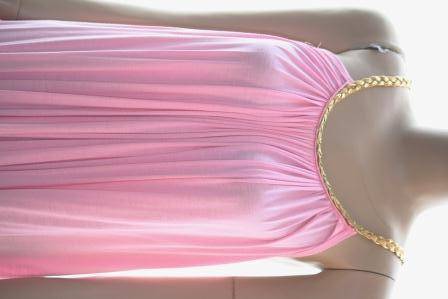 Dazzle all in this fabulous garcian dress with faux leather gold braid.