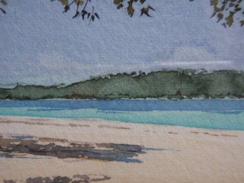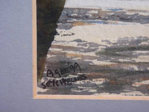 STUNNING ORIGINAL by WELL KNOWN SEYCHELLES ARTIST, ANDREW GEE. ANDREW HAS A GALLERY ON THE ISLAND AND ALL HIS WORKS CAPTURE THE SHEER BEAUTY OF HIS SURROUNDINGS. THIS PAINTING IS A REAL GEM AND IN NEW CONDITION - PERFECT GIFT! SIZE: 23.5CM X 19CM (TOTAL SIZE WITH FRAME) SIZE OF ACTUAL PAINTING:16CM X 11CM.