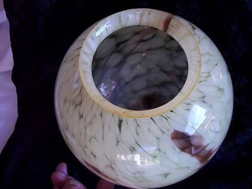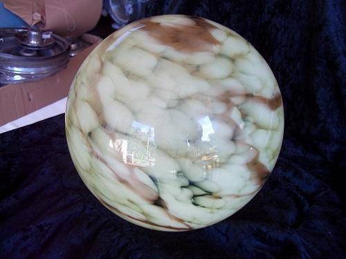 Fabulous vintage Art Deco mottled yellow/ brown globe cloud glass lamp / light shade. This is a stylish original 1930s Art Deco glass shade excellent for a chrome table lamp or ceiling fitting. It measures 20cm high by 20cm wide, diameter across the base is 10cm. This original shade is in great condition .