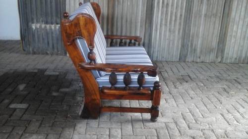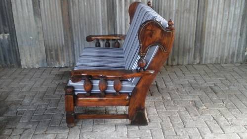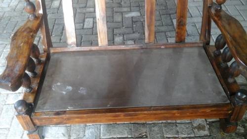 FABULOUS VINTAGE SOLID WOOD CARVED ARM CHAIR. TWO SEATER.