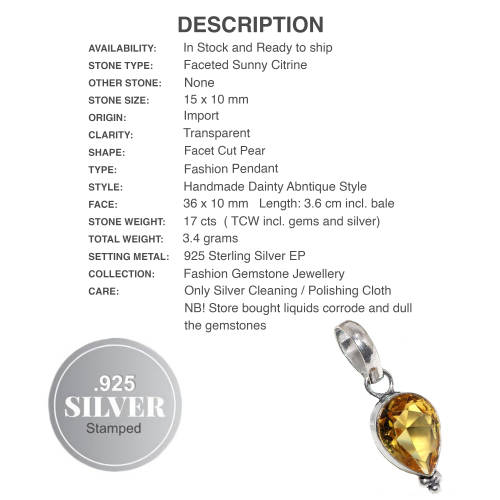 HANDMADE FACETED GOLDEN CITRINE PEAR GEMSTONE PENDANT