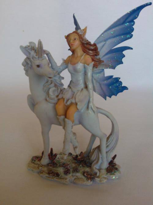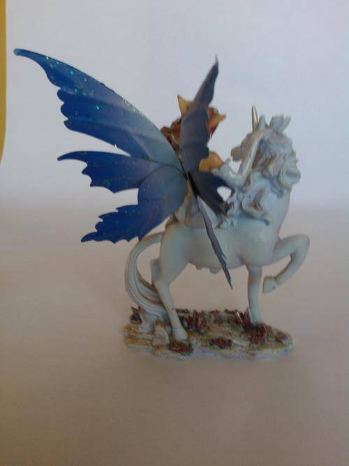 Fairy on unicorn ornament. This is a beautiful piece. 13cm x 18cm. In mint condition - no chips