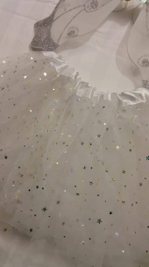 The Tutu is full of sparkling stars and the wings have sparkle glitter and a pearly butterfly in the center.