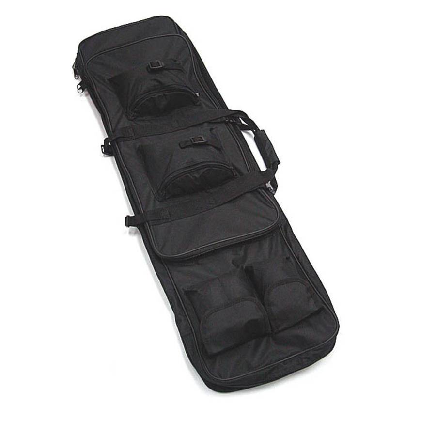 Features: Constructed with durable 600D nylon, suitable for hunting competition. A padded center divider in the primary compartment for accommodating double rifles in an organized way. The secondary compartment is loaded with pockets to store extras such as pistols, optics, cleaning supplies, log books, etc. The three exterior pockets are perfect for keeping your magazines, GPS, writing utensils and other essentials organized. Extra PALS loops on each end allows you to customize your case for your specific needs. The bottom straps for fixing tents, moisture resistant mat or tripod, etc.. Zippers with cord pullers are more convenient to operate.