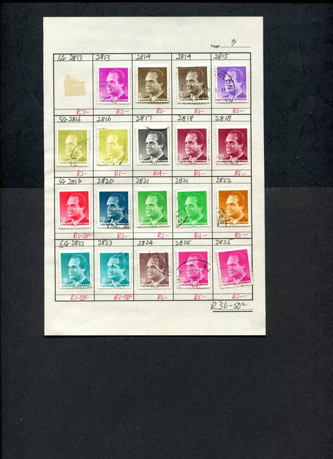 Spain - 19 Stamps Mounted (Hinged) on Approval Page