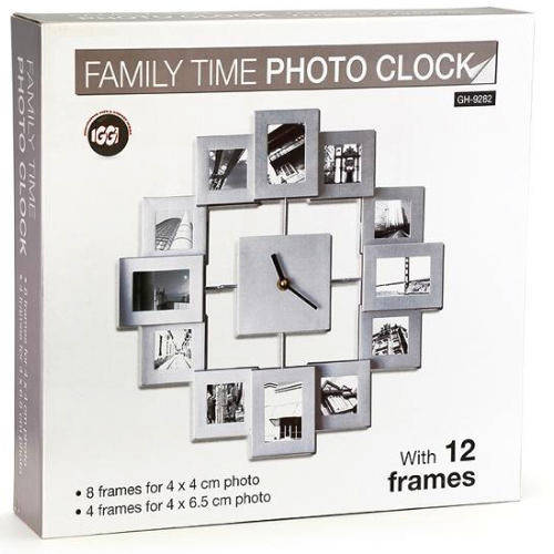 With 12 photo frames replacing traditional numbers, this large, modern clock is perfect for displaying family snaps and cherished memories.