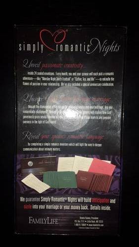 A lovely way to unveil passionate creativity between married partners. 24 sealed envelopes. Each month you and your partner will each pick one envelope and get to do one romantic adventure for and with your partner. Discover God's desire for your marriage and learn to see Oneness in the Light of God's word.