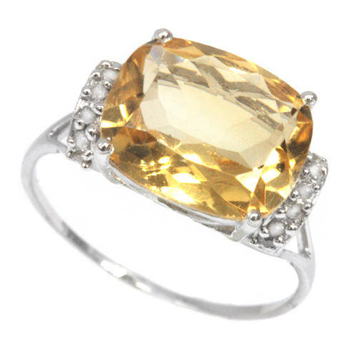 FANCY SOLID 9KT WHITE GOLD 5CT GENUINE CITRINE AND DIAMOND RING
