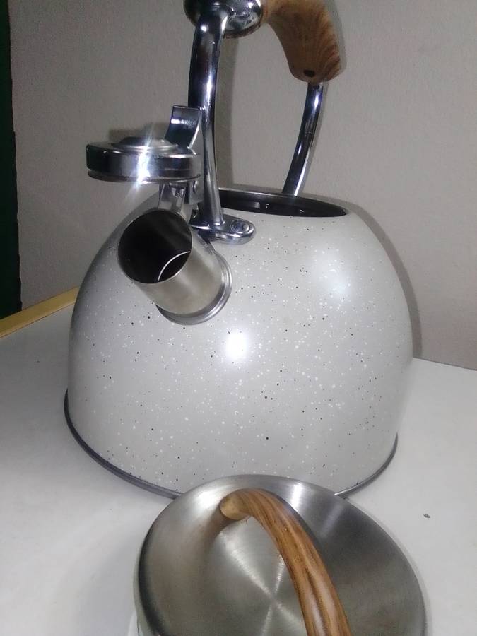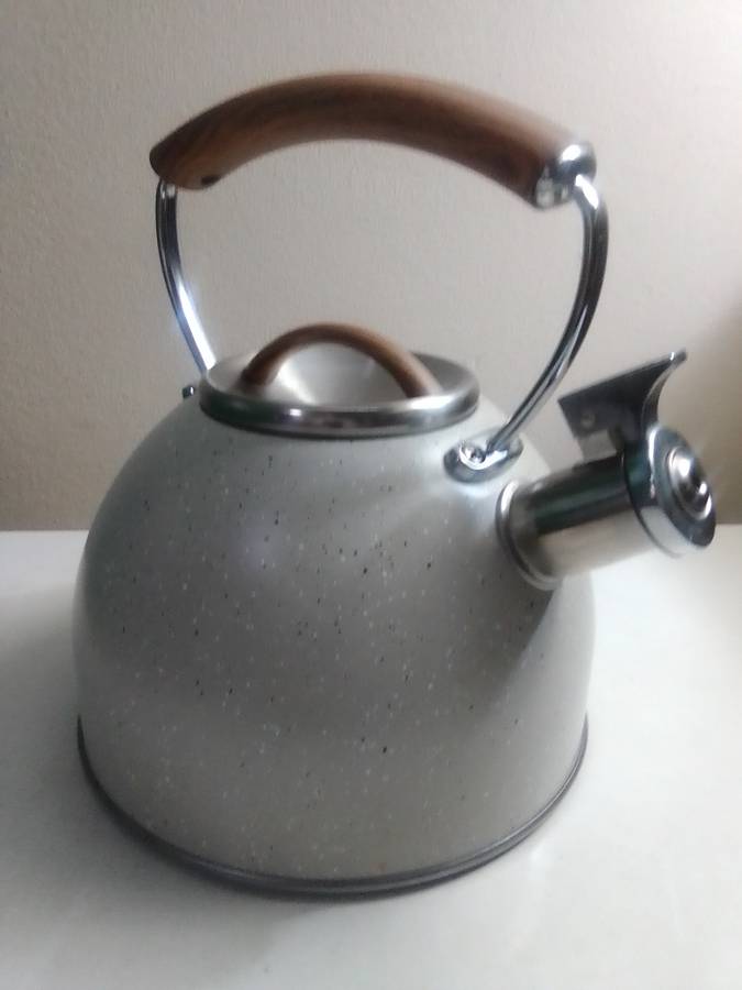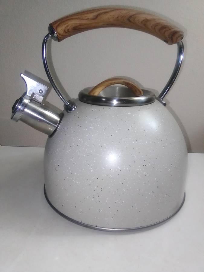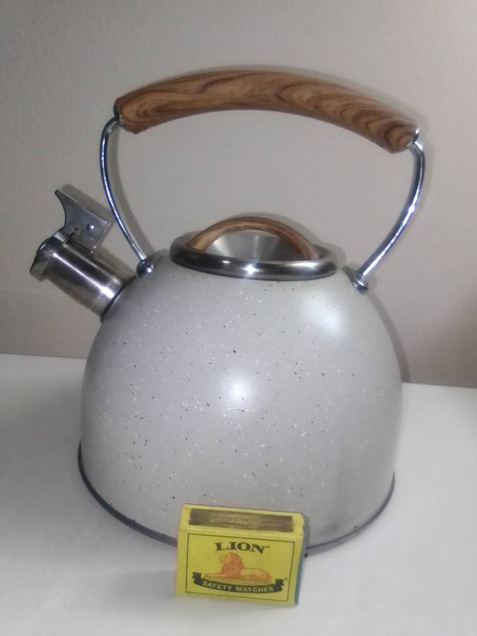 Whistling Stove Top Kettle 2.5L features a classic design that adds style to any kitchen. It has a stainless-steel body with a capsulated base for even heat distribution, and when the water boils, the kettle whistles. It pairs with induction cookers, and ceramic, electric and gas stovetops. Push button spout opener.