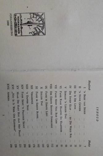 n Harde voorwerp het die voorblad beskadig soos op die foto's gesien kan word. Daarbenewens is die res van die boek in redelike goeie toestand. 1950 Druk.
