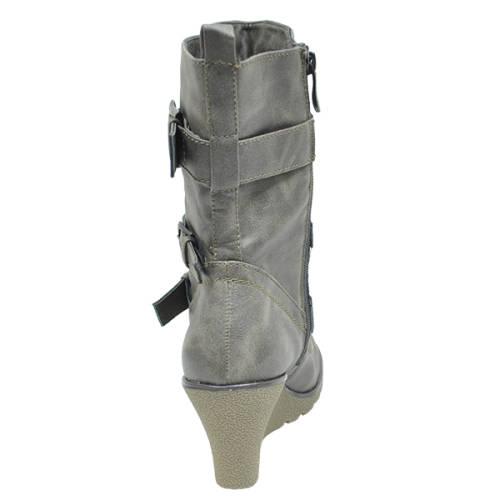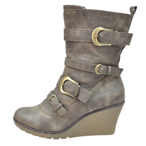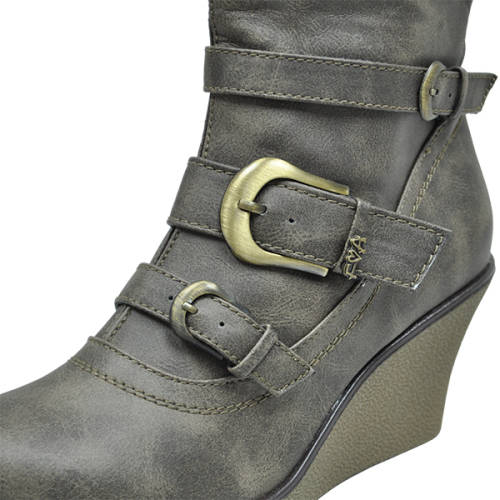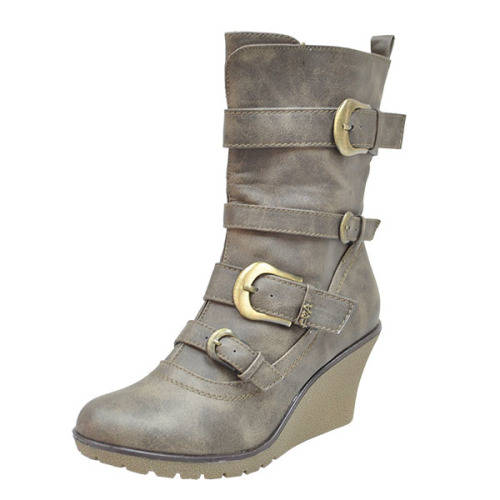 The round-toe wedge heeled boots are not only gorgeous, but comfortable as well. The buckle strap details and zipped-up boots are ready to hug your feet.