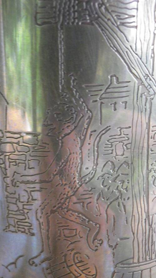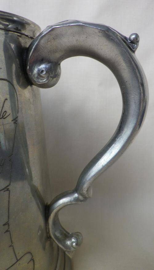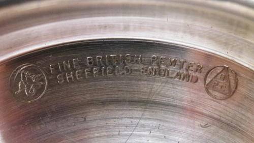 Characterful and fun this pewter tankard designed for the "Hartlepool Mail" has lots of dings to lend charm & authenticity. It depicts the Legend of the poor ship-wrecked monkey hanged because he was mistaken for a French spy during the Napoleonic war- hilarious. Great ice-breaker, and also very collectible. 13cm high, base 10.5 and top 8cm.