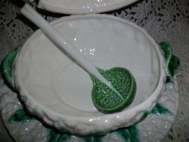 Wow such a nice find cabbage style kichen vintage crockery set of soup tureen with ladel , meat platter and a pair of salt and peppers these are all in good conditionplease note postage will be R65 due to the weight of this or collection welcome in the howick area welcome