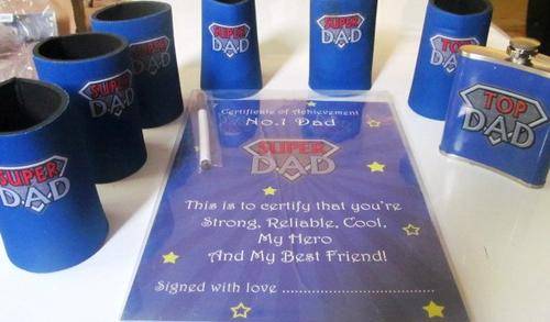 FANTASTIC GIFT IDEA !!!!! Super dad certificate, flask and 6 can coolers !!!!