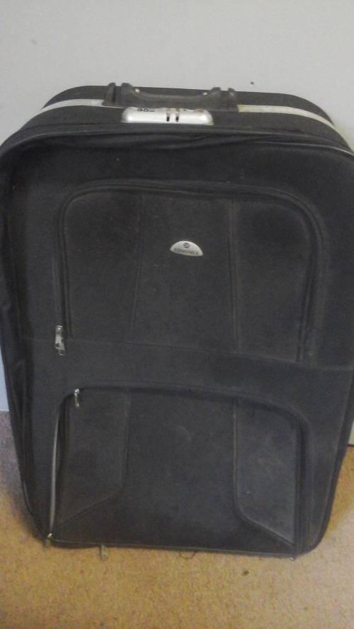 THE HANDLES AND WHEELS ARE BROKEN AND IT IS DISCOLORED AND THE SEWING HAS COME LOOSE BY THE ZIPS. STILL GREAT FOR STORAGE.