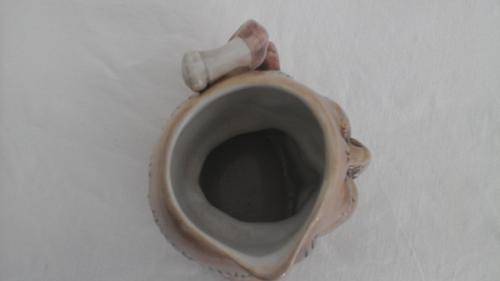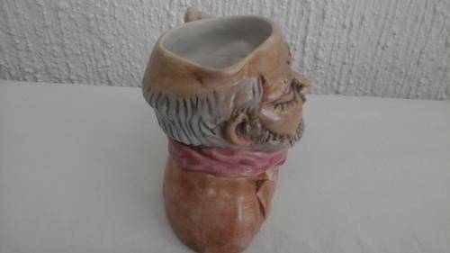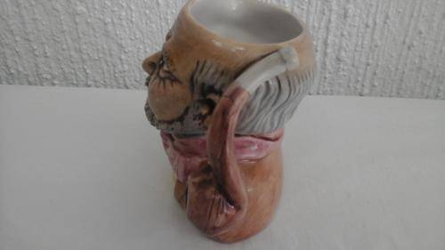 FANTASTIC MINIATURE VINTAGE TOBY JUG. WELL DETAILED AND VIBRANT IN COLOUR. THERE ARE NO MARKINGS OR STICKERS TO SAY WHO THE CHARACTER IS OR WHAT MAKE IT IS. THE JUG IS OF AN OLDER GENTLEMAN WITH GREY HAIR, BLUE EYES, A PINK SCAFF, A YELLOW SHIRT AND A SMOKING PIPE AS A HANDLE. IT MEASURES 82 MM LONG, 54 MM WIDE AND 85 MM HIGH. IT IS A FASCINATING PIECE THAT COULD BE USED AS JUG OR MUG OR DISPLAYED AS A DECORATIVE ORNAMENT!
