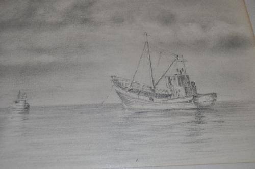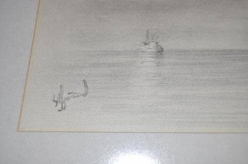FANTASTIC PENCIL DRAWING-HARBOR AND SHIP,SIGNED BY ARTIST