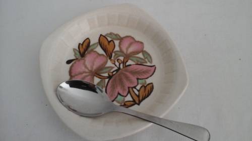 FANTASTIC VINTAGE PALISSY SAUCER AND TEA SPOON. MADE IN ENGLAND. A MEMBER OF THE ROYAL WORCESTER GROUP.