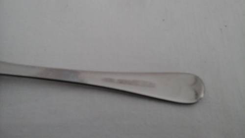 THE TEA SPOON IS STAINLESS AND HAS "FIRTH STAINLESS STEEL" ENGRAVED ON THE BACK.