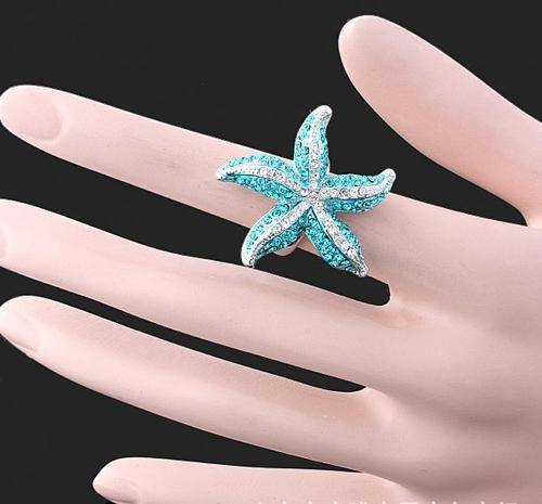 Fashion 18K White GP Starfish Ring Use Multicolour Swarovski Austrian Crystal&Zircon Size 7#8#9#