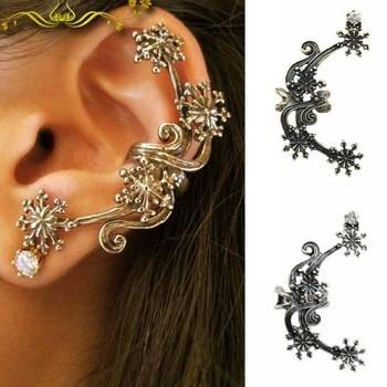 FASHION ANTIQUE SILVER PUNK FLOWER EAR STUDS