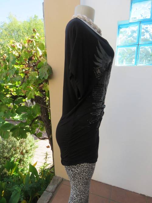 Fashion black long top with 'BAD GIRL' shiny logo.Size 34/10 in polyester,viscose stretch.As new.