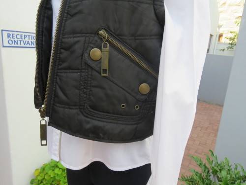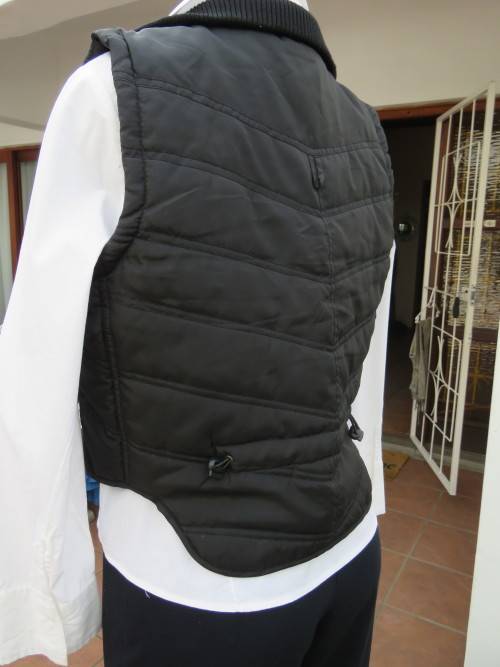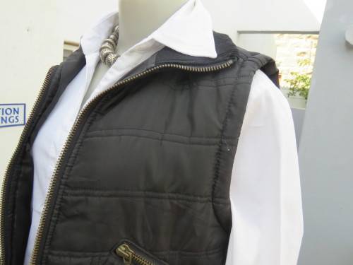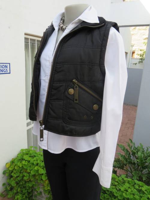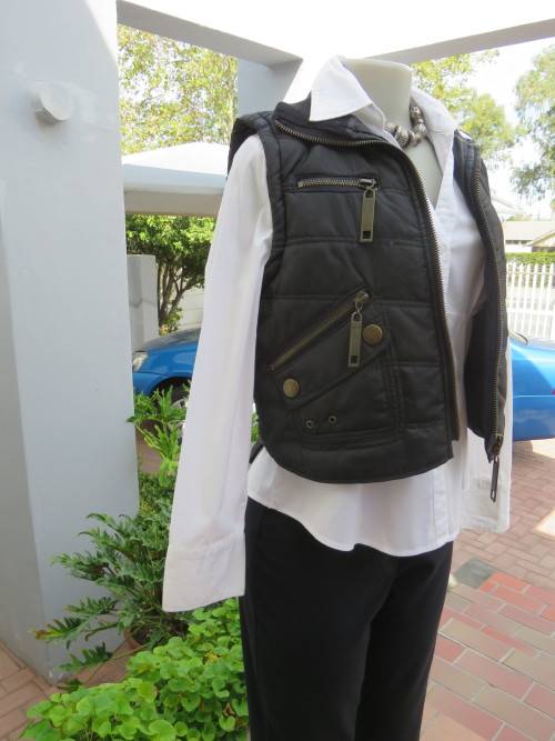 Fashion black puffed cropped waistcoat by IDO with zips galore! Size 38/14.New condition
