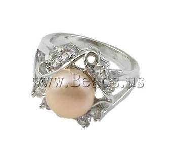 FASHION FRESHWATER PEARL BRASS AND RHINESTONE RING SIZE 8