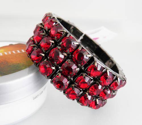 Fashion Green RHINESTONE 3 row stretch cuff bracelet