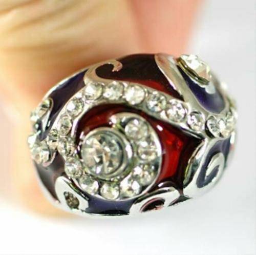 Fashion jewellery stunning chunky ring with maroon and purple tones and cubic zirconias