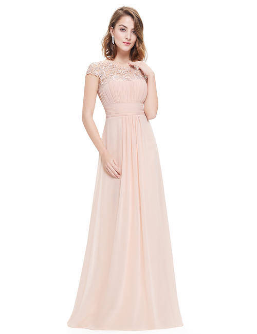 • Lacey neckline decorated with rhinestones enhances the elegance of this dress