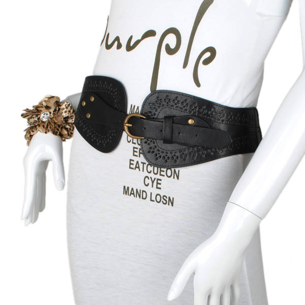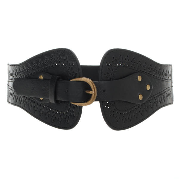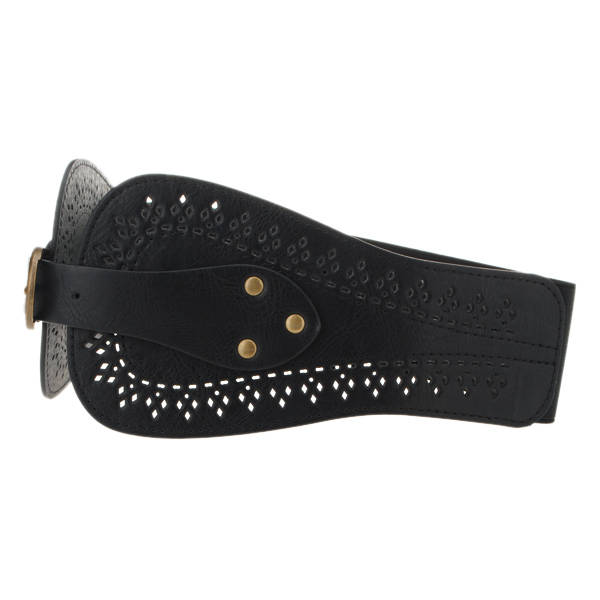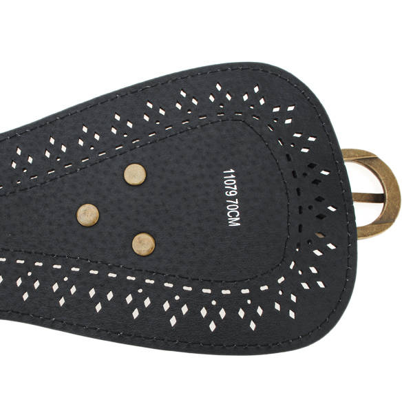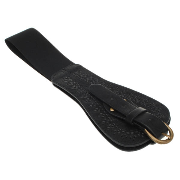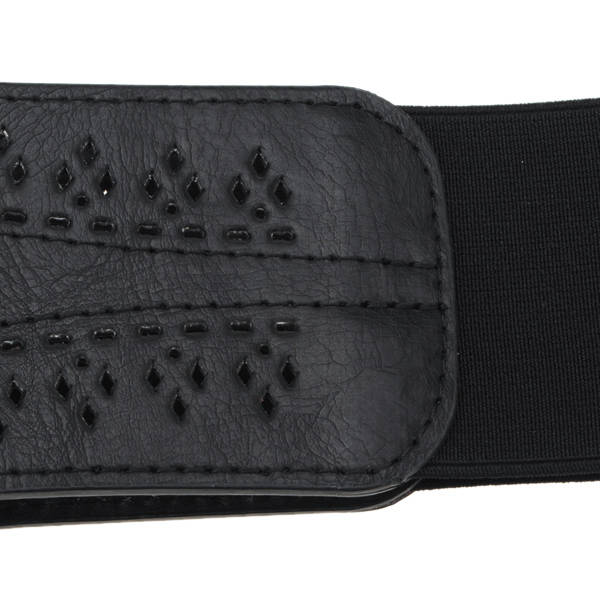 Feature:This chic leatherette belt will make a great accent to your look. Features a studded design and circular leatherette buckle. Stretchy back.To match your apparel perfectly, personalize your wearing style.It is a must have fashion accessory for your wardrobe.Description:Product Name: Waist Belt Fit for: LadyMaterial: Elastic Fabric, Metal, Faux LeatherBuckle Size (Closed): 3.7cm/1.45''(L)X3.5cm/1.37''(W)Belt Length (Not Stretch): 70cm/ 27.5"Belt Width (Not Stretch): 6cm/2.3'' to 11cm/4.3''Fit for Waist Girth: 25" – 28"Color: blackNet Weight: app 117gPackage Content: 1 x Waist Belt