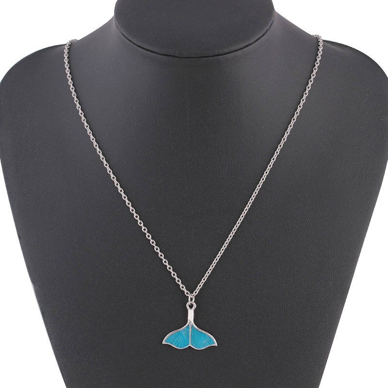 Fashion Luminous Blue Mermaid Fishtail Pendant Necklaces Unique Women's Necklace Party Jewelry