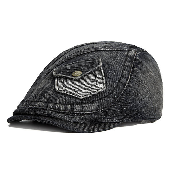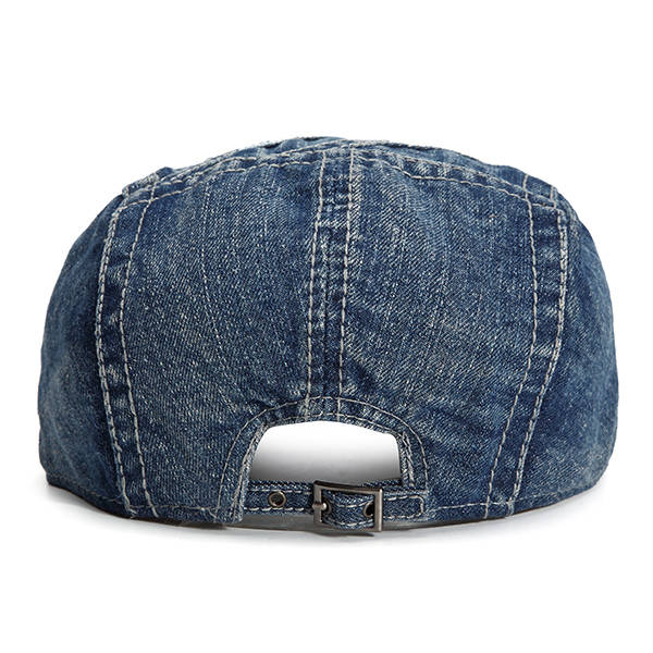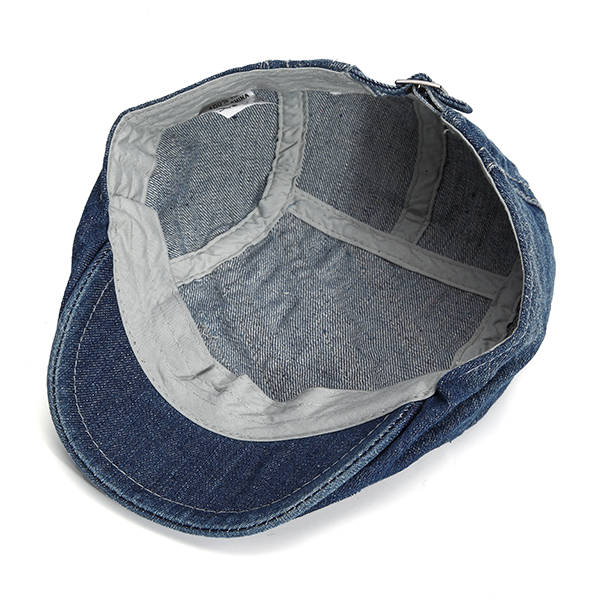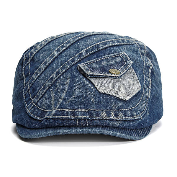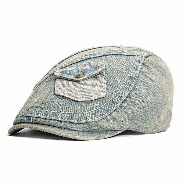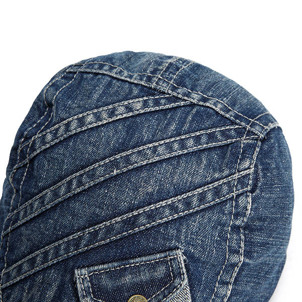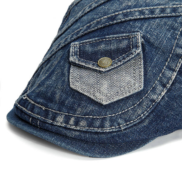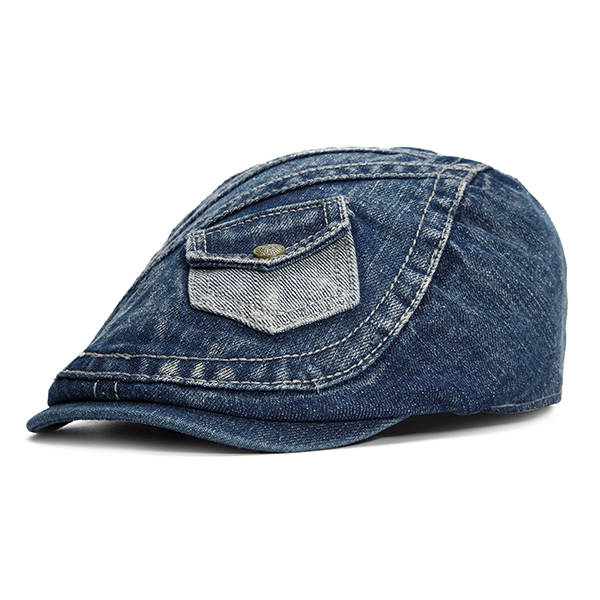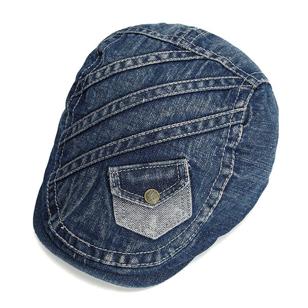 Fashion Mens Vintage Pocket Design Denim Beret Hat Duckbill Golf Buckle Cabbie Cap (COLOR: BLUE)
