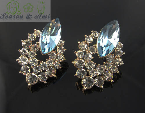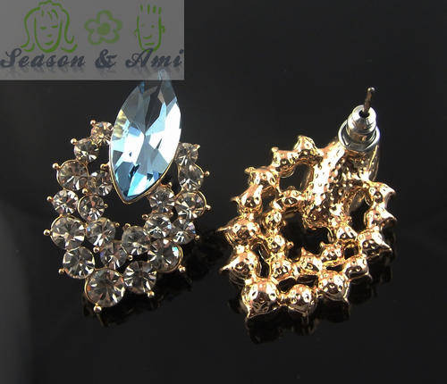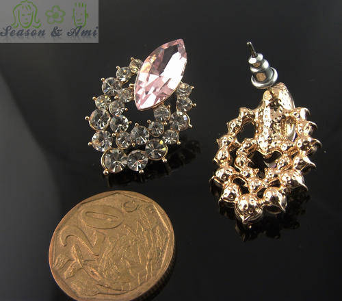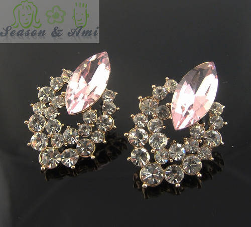 fashion pink and blue rhinestone earrings