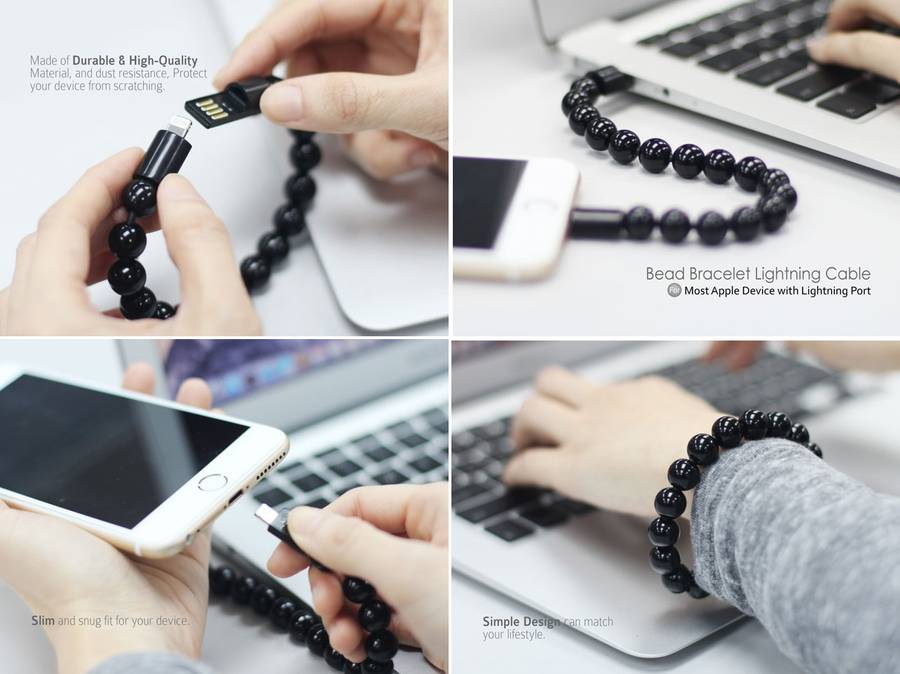 Wearable USB to Lightning data sync and charging cable bracelet.