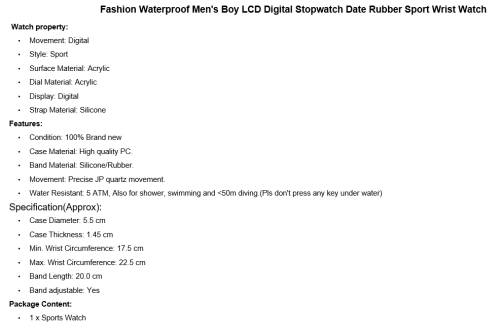 Fashion Waterproof Mens Boy LCD Digital Stopwatch Date Rubber Sport Wristwatches