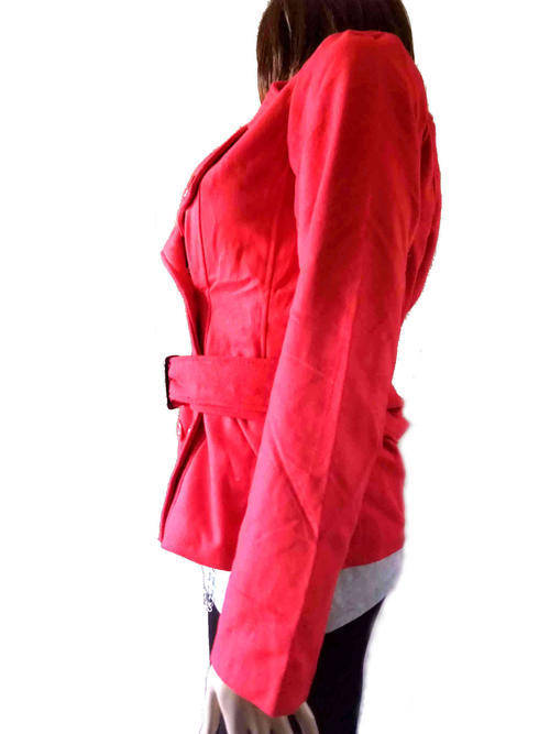 Fashion Woman's Cotton Coat Jacket Double Breasted w Belt Red Size L(34)