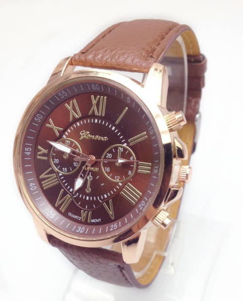 Fashion Women Geneva Quartz Watch with PU Leather Strap - BROWN