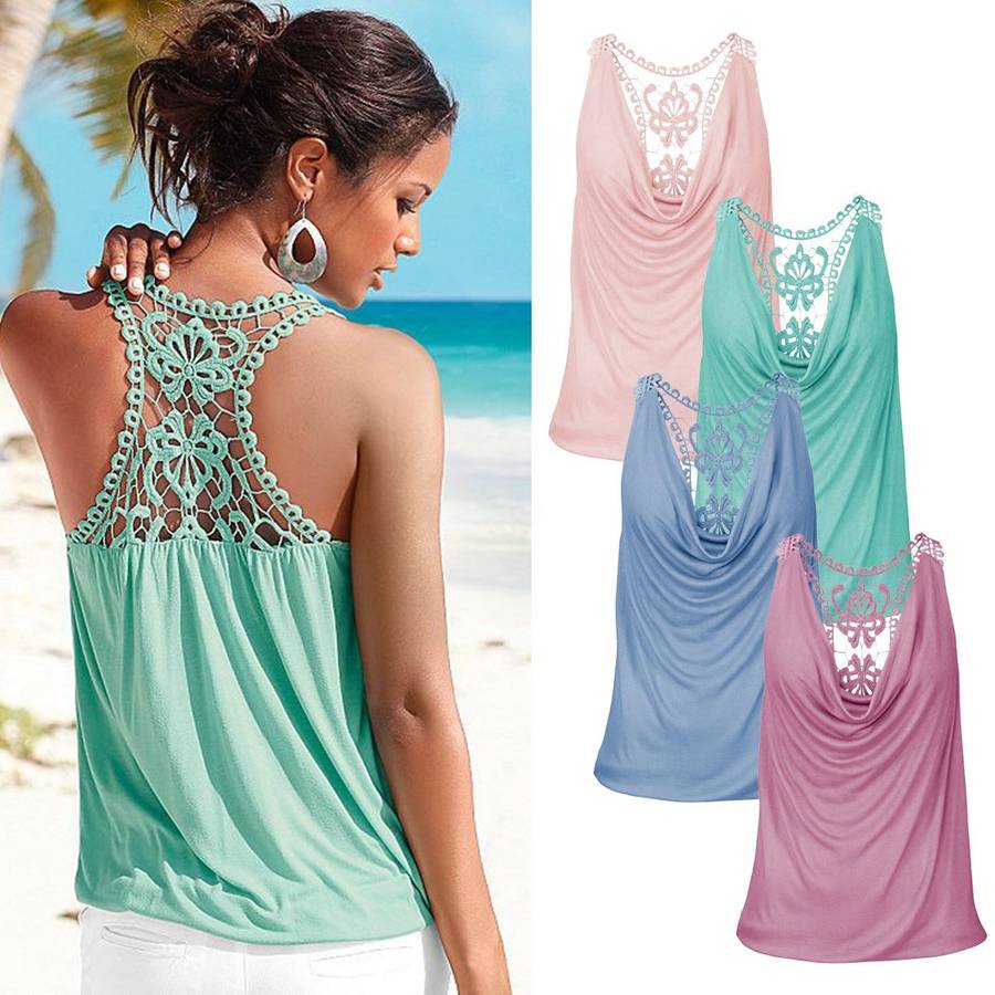 Fashion Women Summer Lace Vest Sleeveless Shirt Blouse Casual Tank Tops T-Shirt