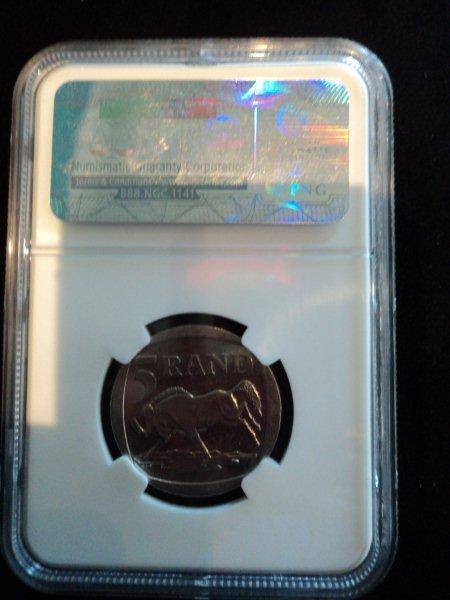 Fastest Growth Coin - "Smiling Mandela" R5 - Graded AU 58 by the NGC.