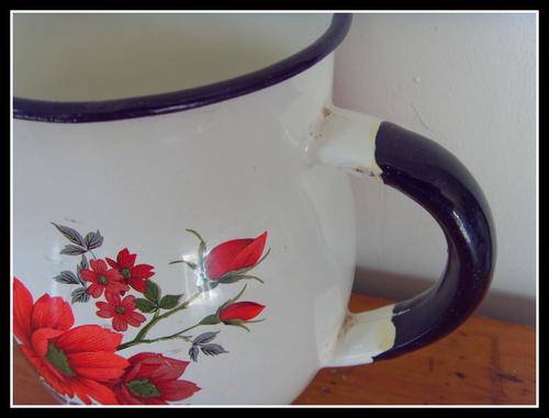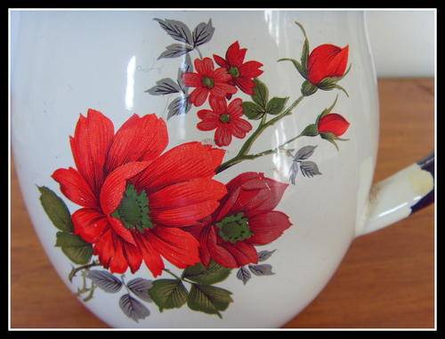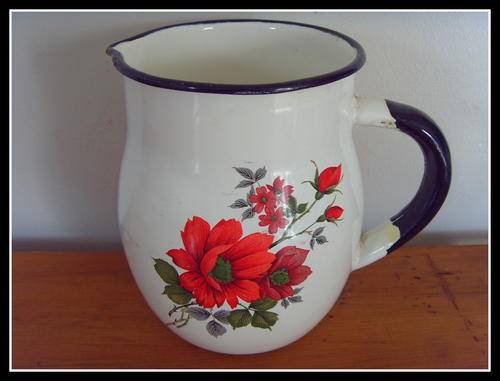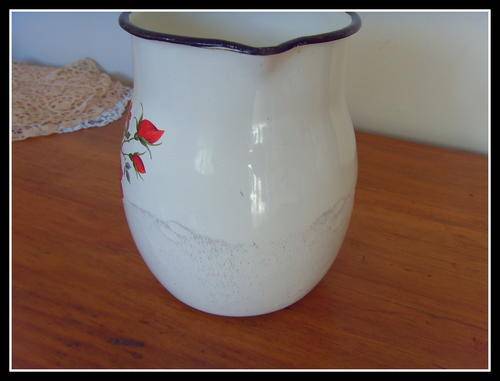 GORGEOUS VINTAGE FLORAL ENAMEL JUG WITH FAT ROUND TUMMY