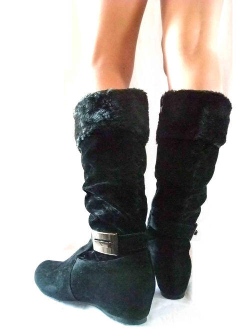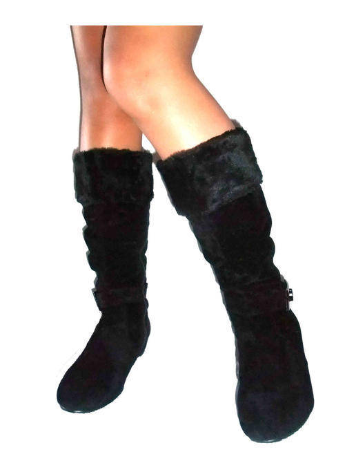 Faux Fur Calf Flat Heel Velvet Boots Sizes 3,6,7,8