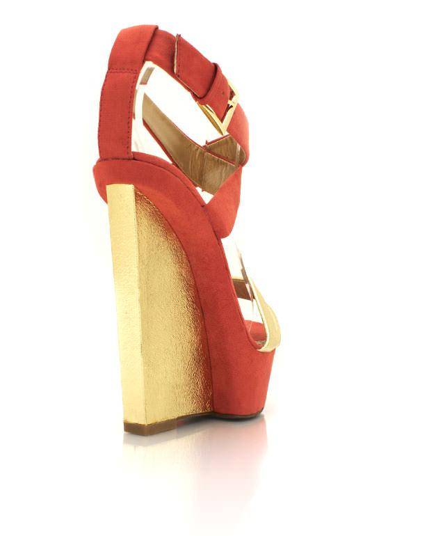 Faux suede metallic wedges, Coral, Size 3 (SA/UK), ladies shoes, heels